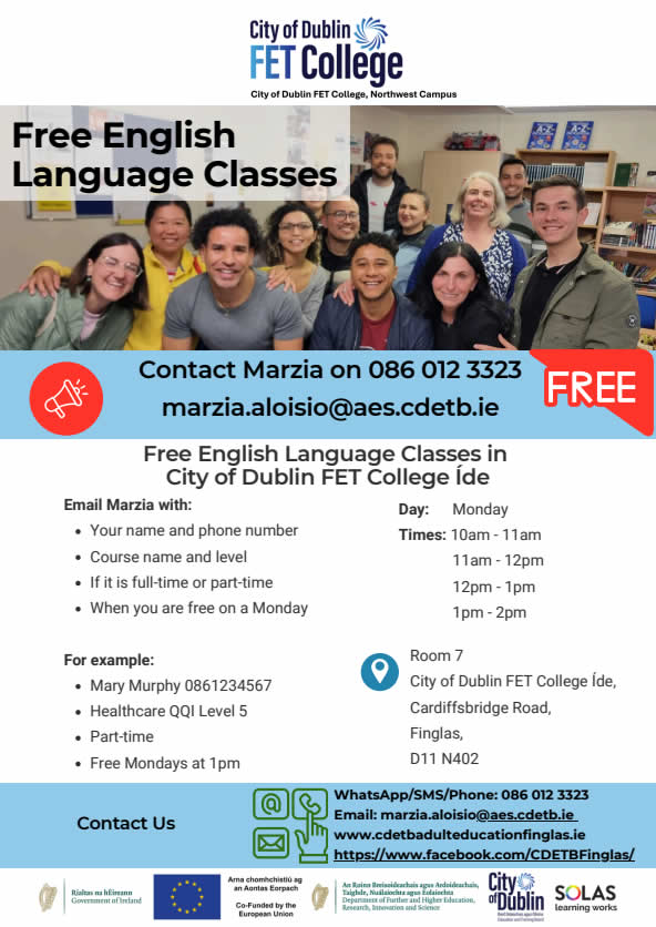 - Room 7 City of Dublin FET College Íde, Cardiffsbridge Road.