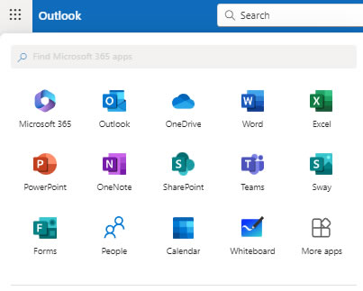 After accessing your email you can Click the App Launcher icon (located in the upper left corner) to choose the tool you want to use (Outlook, OneDrive, Word, Teams, etc.)